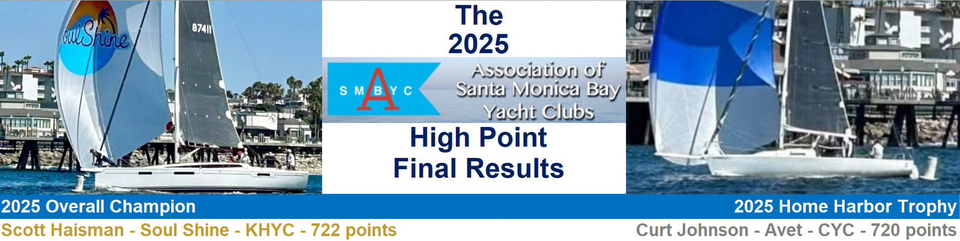 Description: The annual High Point Series consists of 12 races, six races each from each of our two harbors, King Harbor and Marina del Rey. The individual races are hosted by member Yacht Clubs of the Association. All Notices of Race, Sailing Instructions and fees are issued and specified by the host clubs. The scheduled High Point Series events consist of PHRF, One-design, ORCA and Cruiser classes. When a High Point event includes multiple races, the High Point race is the second race of the day.